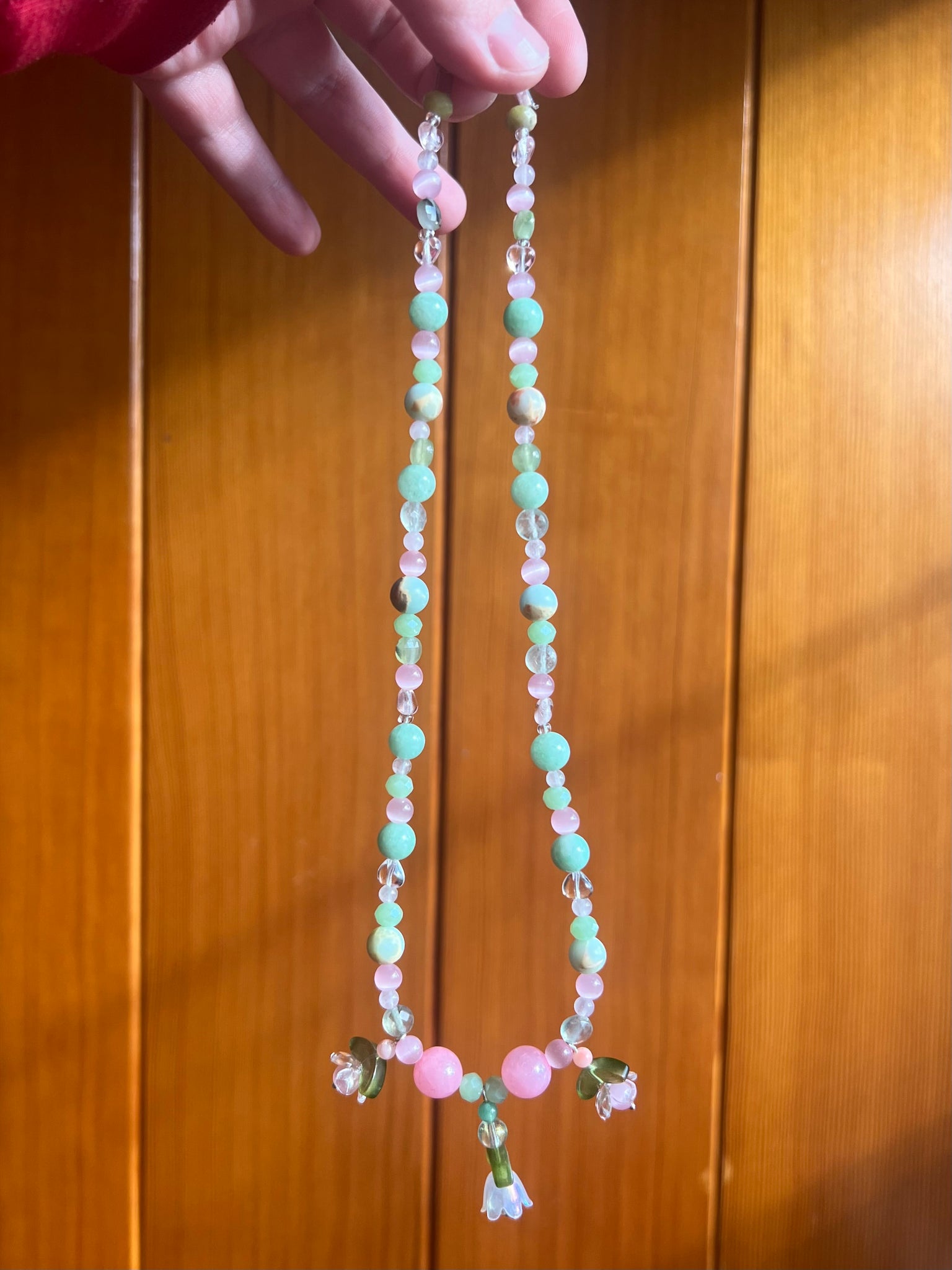 The special beads used in this design were brought back to the states from Amsterdam and are faceted glass.