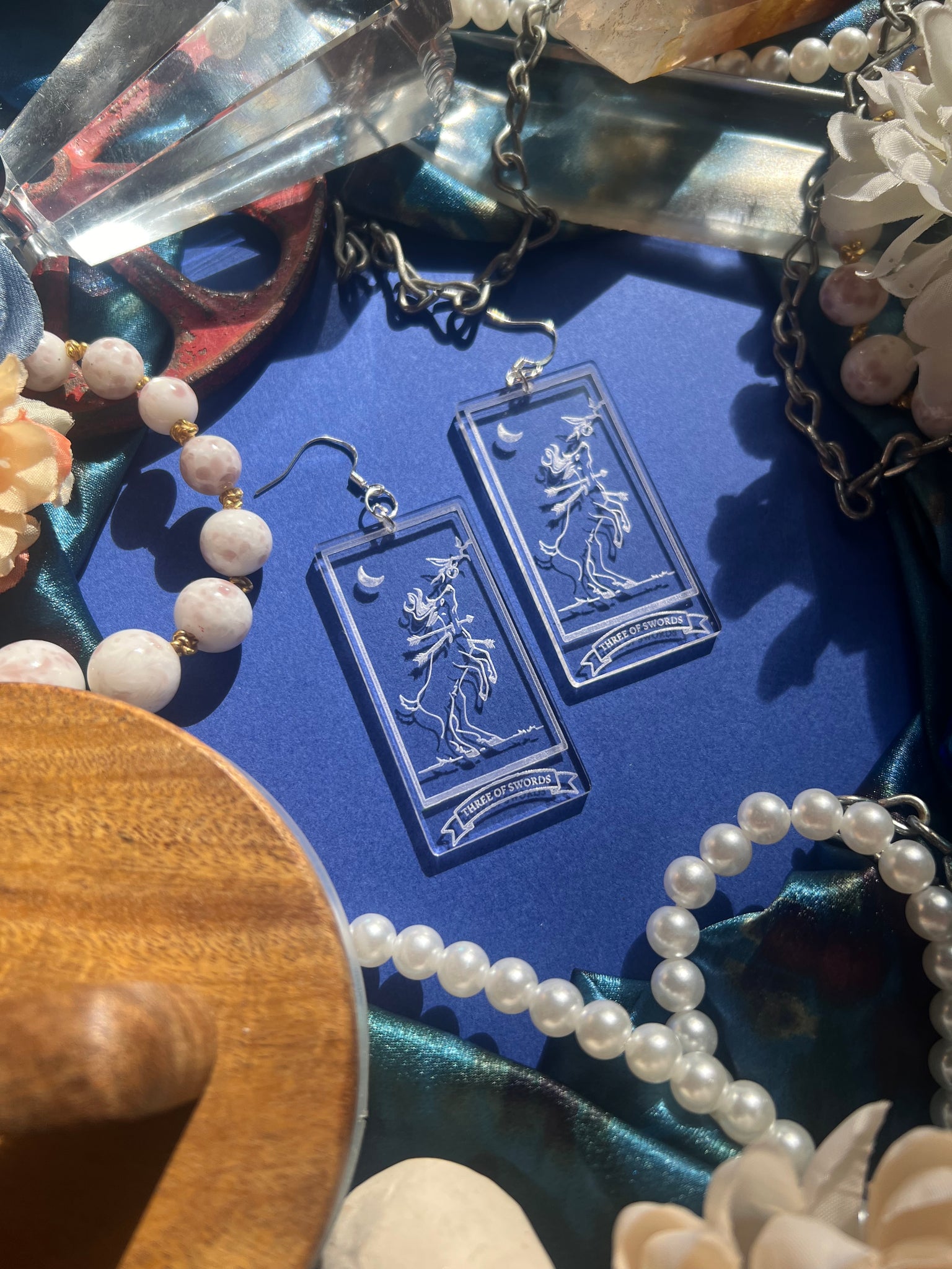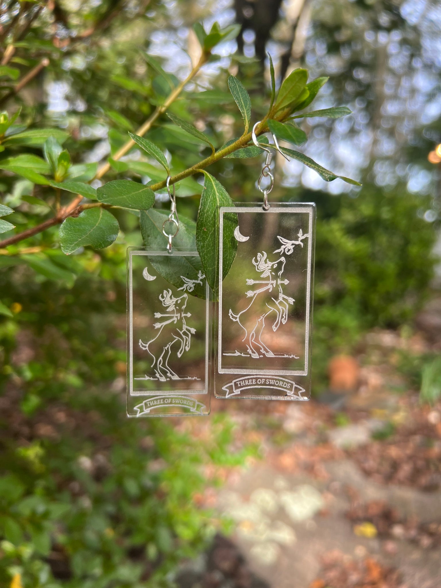 These earrings are loosely inspired by Sabrina Carpenter's 'Lie to Girls'. I kept on imaging what tarot cards the girl outside the strip club from the song pulled. I wanted to do even more designs for this- the possibilities were endless!
