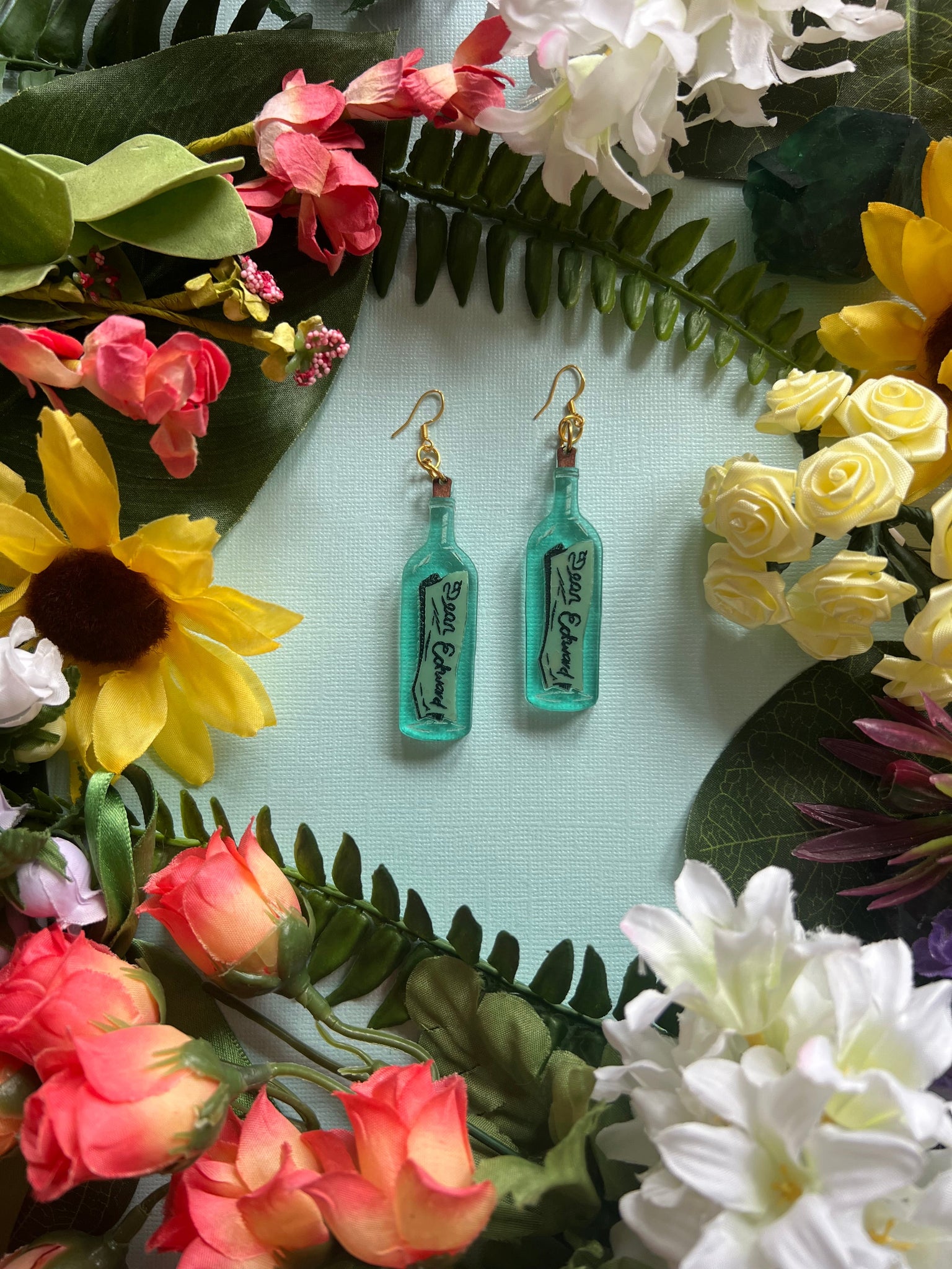 These are my personal fave design of this collection. I'm THRILLED that the technique I used makes the letter seem like it's actually inside of the bottle! These are inspired by the first scenes of season 2, where we see Stede writing out his feelings to Edward and throwing them into the Sea in hopes that they reach him.